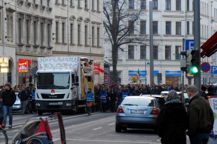 Rückblickend markiert das Jahr 2014 für die GSO schon eine gewisse Zäsur. Als wir mit dem Motto „Refugees WelÂcome“ demonstrieren gingen, ahnte ja noch niemand, was uns bald darauf immer wieder montags auf den Straßen begegnen würde. Unsere Orga-Strukturen dann zu nutzen, um für die Gegenproteste zu mobilisieren, war dann nur folgerichtig.