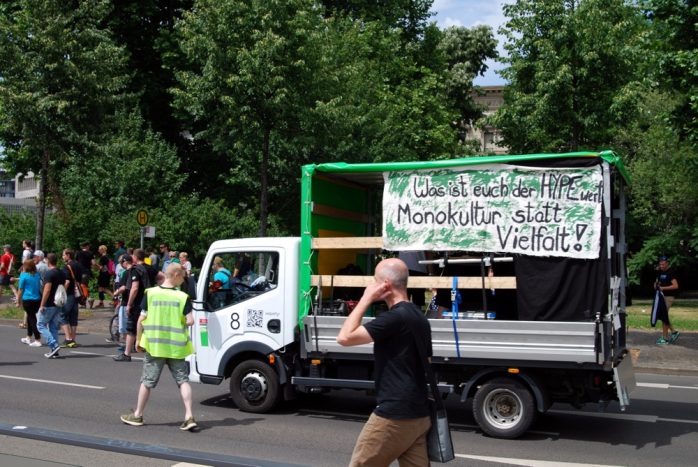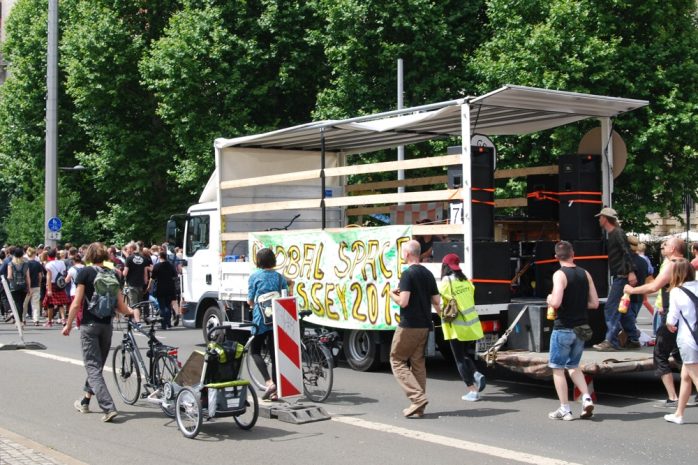 Das mit dem Demo-Ausklang im Park und der Aftershowparty am Abend ist nichts Neues – beides gehört fast seit der ersten GSO mit dazu. Verdienen tut bei der GSO aber niemand was – weder die DJs noch die Leute an der Kasse. Alle Einnahmen dienen einzig und allein der Refinanzierung der Demo-Wagen bzw. der Druckerzeugnisse, die wir jedes Jahr für die GSO produzieren.