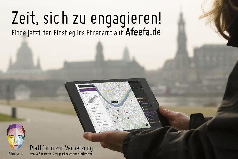 Afeefa.de in Leipzig soll allen Leipziger Organisationen und Initiativen die Möglichkeit bieten, sich Interessierten vorzustellen. Auch Geflüchtete können sich direkt selbst über die Plattform informieren, weshalb stetig an der Mehrsprachigkeit und Nutzerfreundlichkeit gearbeitet wird.