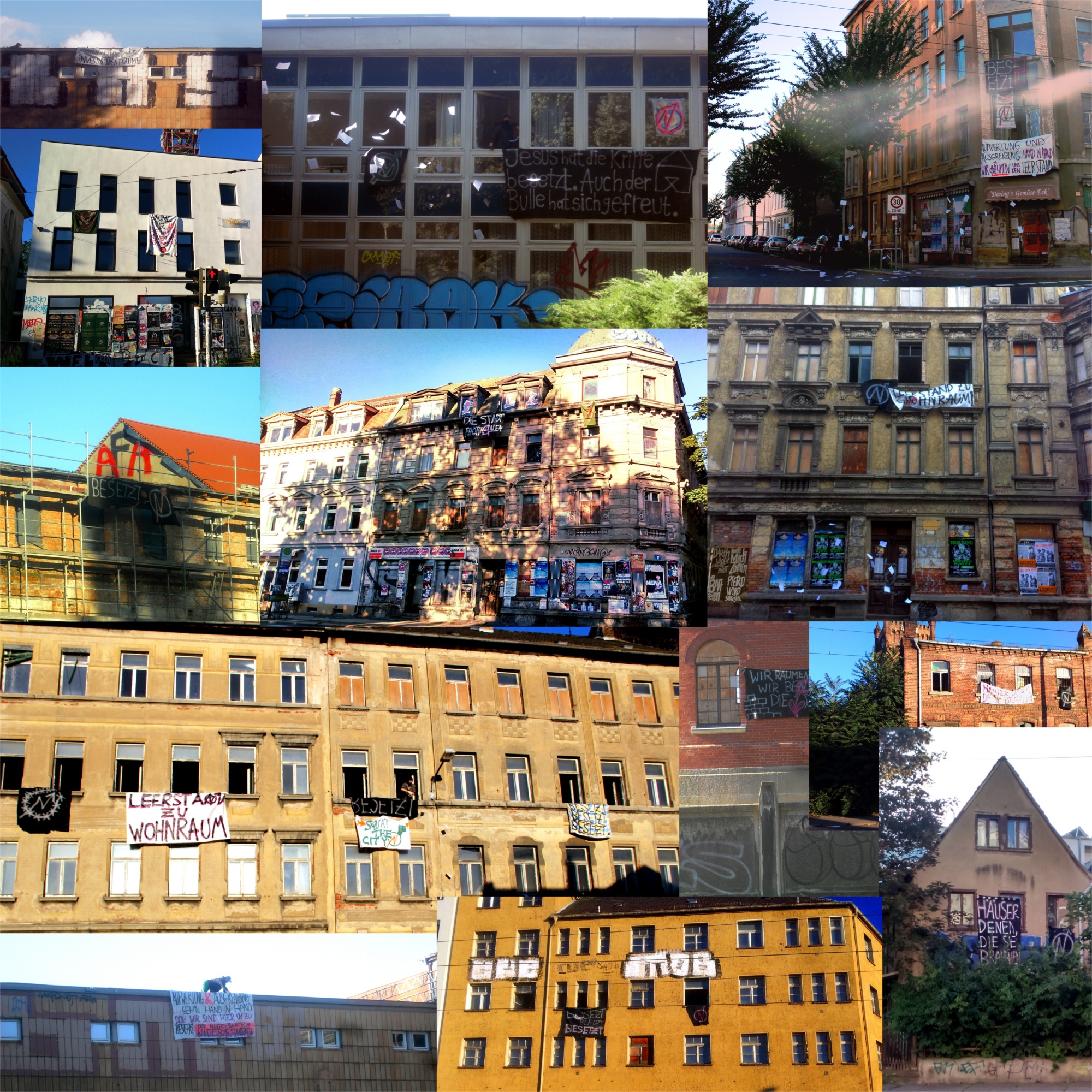 „Wir haben in den frühen Morgenstunden des Sonntags 12 Gebäude in Leipzig für kurze Zeit besetzt. All diese Häuser und Hallen haben gemein, dass sie seit Jahren leer stehen und entweder saniert werden sollen oder weiterhin ungenutzt verfallen. Entgegen der Pläne von Spekulant*innen und Investor*innen, möglichst viel Kapital aus den Objekten zu schlagen und im Zweifelsfall Jahrzehnte zu warten, bis der stetig steigende Mietspiegel aufwändige Renovierungsarbeiten zulässt, haben wir uns diese Räume angeeignet.“