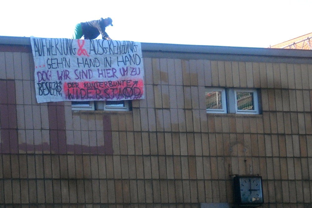 So lautet ein Schreiben, welches die Hausbesetzer heute an die Presse verschickt haben. Allerdings ging es wohl eher um die Bilder, welche von der Aktion entstanden – denn die Aktivisten sind längst wieder fort und haben sich zur Stunde zu einem Barbeque im „Schwarzen Dreieck“ zusammengefunden.