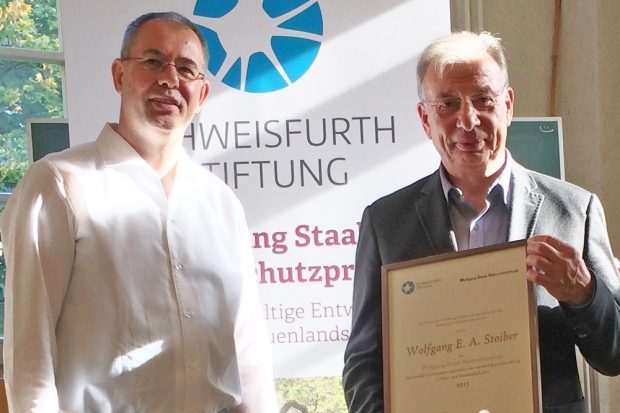 Den zweiten Preisträger Wolfgang E. A. Stoiber beschrieb Dr. Nils Franke, Sprecher der Regionalgruppe Sachsen des Bundesverbands Beruflicher Naturschutz e. V., in seiner Laudatio als „energiegeladen, ideenreich, teilweise völlig unorthodox, strategisch höchst geschickt und ehrenamtlich arbeitend bis zum Anschlag“.