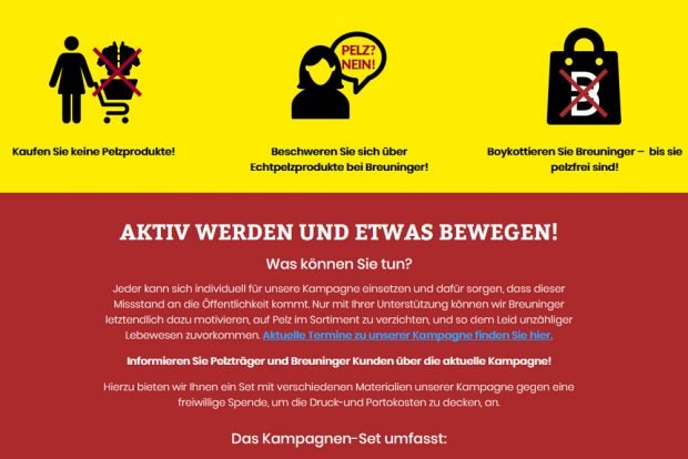 Das Deutsche Tierschutzbüro rief vor vier Monaten die Anti-Pelz-Kampagne „Breuninger – Leid und Tod im Angebot“ ins Leben und veranstaltete bundesweit vor Breuninger-Filialen Protestaktionen. Die Aktivisten informierten Passanten und Breuninger-Kunden über Echtpelz, diese – so der Tierschutzverein – waren überrascht und schockiert, dass das Warenhaus noch immer Echtpelz im Sortiment führt.