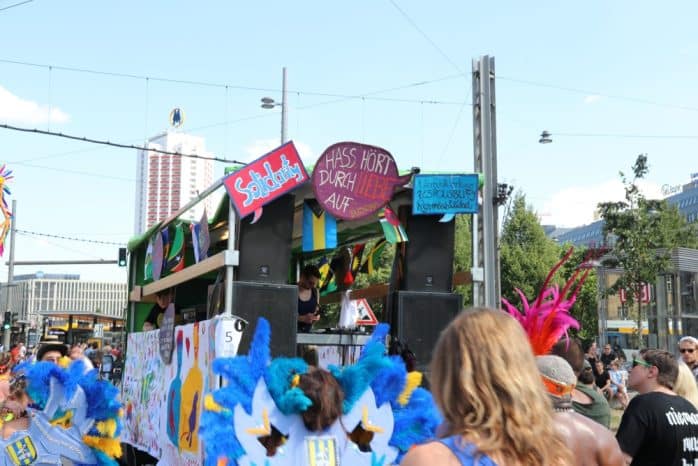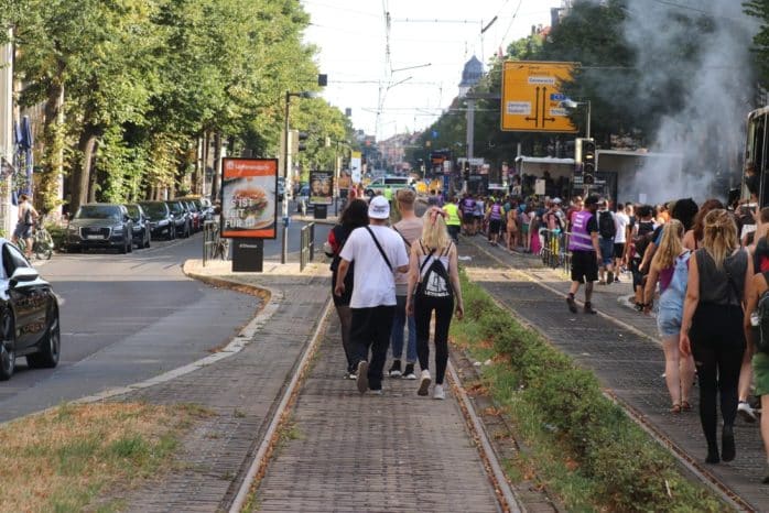 Und dann doch nur eine Art Loveparade für ein paar Leipziger? Sagt ja der Kritiker gern so, wenn er gerade mal wieder keine Zeit hatte, den Tag mit den Tanzenden zusammen zu verleben. Oder sich mal mit der Geschichte des Wagenzuges der Leipziger Clubs befasst hat – so von Hanfparade bis zur politischen Club-Demonstration. Und dennoch gern am Wegesrand steht und Handyvideos vom Geschehen für die anderen daheimgebliebenen Facebookfreunde fertigt. Die ja dann alle nicht mitgetanzt, nicht miterlebt, sondern nur eine fade Kopie davon erhalten haben. Im irrigen Glauben, dass das ein selbst gelebtes Leben wäre.