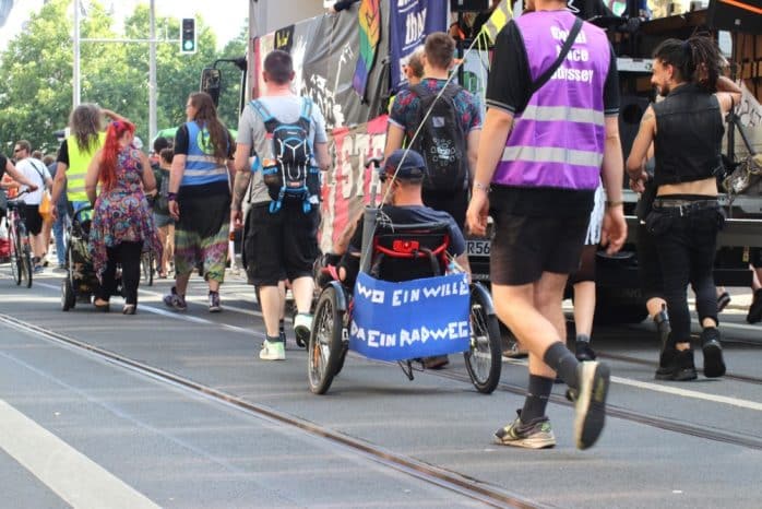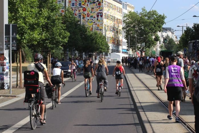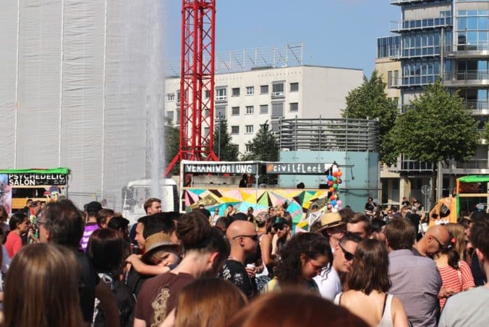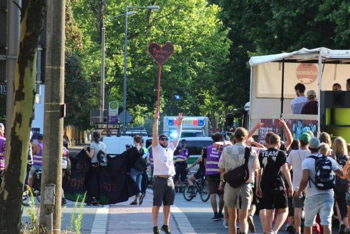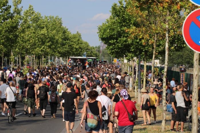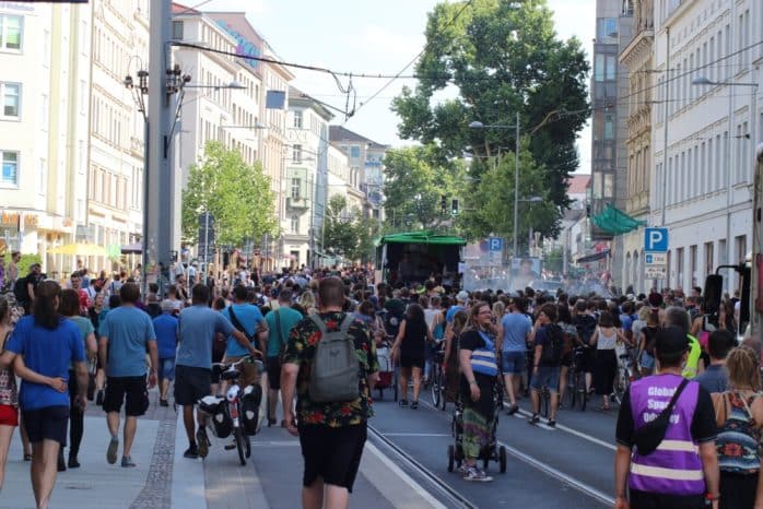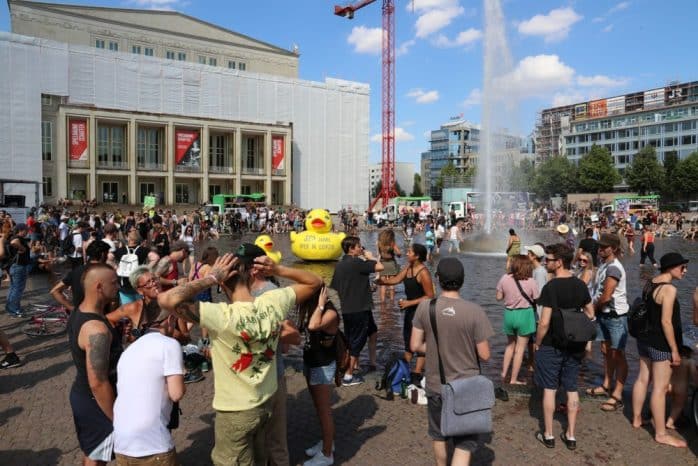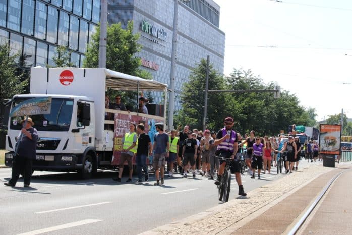 VideoMal wieder laufen in Leipzig. Und tanzen. Abschütteln, was einen längst täglich an Staub und Mief umgibt. Einen „Heimat-Horst“ und eine abdriftende CSU/CDU in Wahlkämpfen in Bayern und Sachsen, fremdenfeindliche Positionen im Alltag und diese ewige Panik vor irgendetwas mit Ausländern. Es wirkt wie Platzangst auf einem unüberschaubar großen Feld von Möglichkeiten, wenn sich derzeit die globalen Mauerbauer auf den Weg machen. Alles raustanzen. Natürlich warten auch auf die rund 3.000 Demo-Teilnehmer, die am 14. Juli einen weiten Weg von Plagwitz bis zum Friedenspark abtanzten, Herausforderungen und neue Wege in der Zukunft. Aber welche sie lieber gehen wollen, das wurde deutlich. Eine Mauer war jedenfalls nicht dabei.