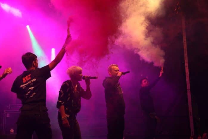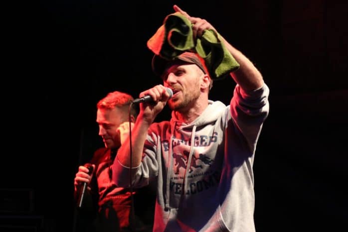 Auch nicht, dass auch in diesem Jahr in der Zeit von 14 bis 22 Uhr mehrere tausend Leipziger zur Sachsenbrücke kamen, um einen anderen Weg zu finden als Hass und am Ende dessen immer Verletzte und Tote zu erleben. Angesichts der derzeitigen Zustände in Sachsen scheinen die Lichter, welche Mono & Nikitaman gemeinsam mit Frontmann Mal Élevé von Irie Révoltés am Ende der Veranstaltung auf der Bühne entzündeten, wenig zu sein. Doch sie sind es nicht, wenn am Ende des Auftrittes Band und Publikum gemeinsam skandierten: „Refugees are welcome here“.