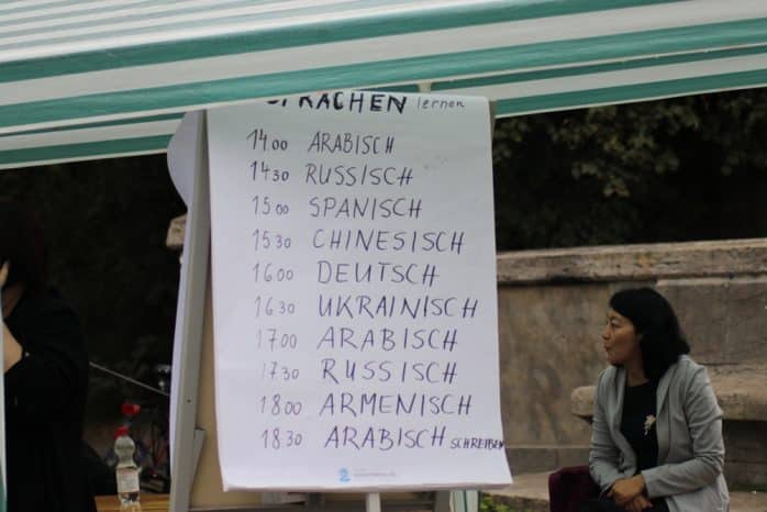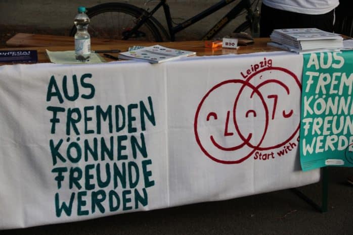 Bereits zum vierten Mal trafen sich Vereine und Parteien von Grünen über Linke und SPD auf Einladung der Initiative „Leipzig nimmt Platz“ unter dem Motto „ankommen. platznehmen. mitgestalten.“ auf der Sachsenbrücke, um eben das zu versuchen, was gerade in Chemnitz nicht funktioniert. Statt Abgrenzung und Hass der tägliche Versuch, mit dem Anderen ins Gespräch zu kommen, gemeinsame Wege zu suchen – wie zum Beispiel bei der Initiative „Kontaktstelle Wohnen“, welche Geflohenen bei der Suche nach einer eigenen Wohnung hilft. Oder einem Rechtshilfekollektiv, welches bei den oft schwer verstehbaren Formularen der Ausländerbehörde bis hin zur Rechtsberatung Menschen unterstützt, die unberechtigte Ablehnungsbescheide erhalten.