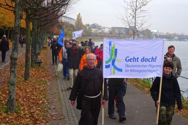 Der deutsch-polnische ökumenische Pilgerweg für Klimagerechtigkeit führt über 78 Stationen und 1.700 gelaufene km und endet am 9. Dezember im polnischen Katowice, wo zeitgleich die 24. Welt-Klimakonferenz (COP 24) stattfindet. Der Weg verläuft durch die drei großen deutschen Braunkohlegebiete und die Pilger/innen besuchen besondere „Schmerzpunkte“ (z. B. Hambacher Forst, Pödelwitz bei Leipzig, Jänschwalde in der Lausitz) und stärken sich spirituell an „Kraftorten“, bei Gottesdiensten und im gemeinsamen Gebet.