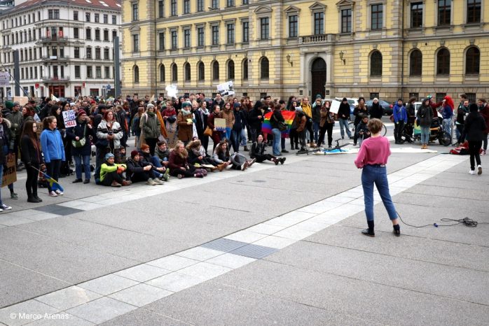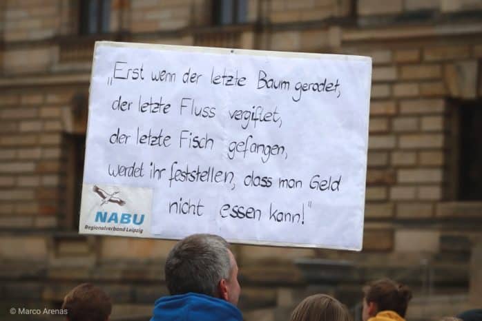 In einer weiteren Rede wurden Baumbesetzungen wie im Hambacher Forst thematisiert. Dass diese nötig seien, sei das Ergebnis eines Versagens von Politik, Unternehmen und Verbrauchern.