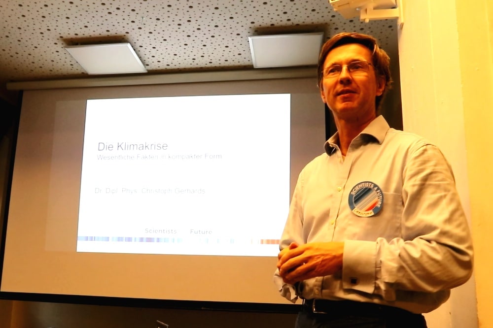 Vielleicht ist es die unternehmerische und schlicht logische Sicht auf die Dinge, die Gerhards über die Hinweise auf vorhandene Daten und wissenschaftliches Arbeiten dazu animierte, in seinem knapp viertelstündigen Vortrag neben den derzeitigen CO2-Anstiegszahlen und der Darstellung der verschiedenen Einflussfaktoren dabei, die minimalen Folgekosten vorzurechnen, welche die kommenden Generationen bei der Fortsetzung der aktuellen Entwicklungen haben werden. Nur auf den derzeit menschgemachten CO2-Ausstoß bezogen, welchen man später notwendigerweise wieder mit teils noch zu entwickelnden Techniken aufwendig binden müsste. Allein dafür seien niedrig geschätzt die Folgekosten mit dem „jährlichen Börsenwert von VW“, also rund 75 Milliarden Euro im Jahr in Zukunft aufzubringen.