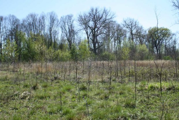 Beispiel Femelloch im Waldgebiet „Nonne“ in Leipzig 2019. Laut einem Artikel vom 23.07.19 in der LVZ räumt die Stadt flächige Ausfälle bei den Neuaufforstungen ein. Momentan wird das Areal von standortuntypischen Robinien überwuchert.