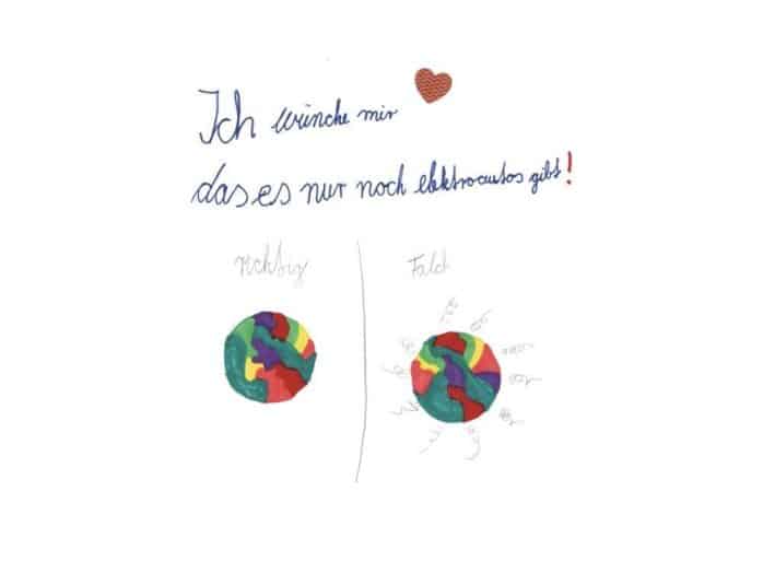 Und natürlich gab es noch ganz andere Motive, die „richtig“ gewesen wären. Wann bitte sieht man mal eine Frau auf der Weltkugel stehen? Oder den zutiefst richtigen Wunsch, wie Mama und Papa miteinander umgehen sollten, damit diese Welt eine bessere wird. Oder gar, was Gewitter und Hagel mit uns zu tun haben? Übrigens das Bild eines 3-jährigen Mädchens.