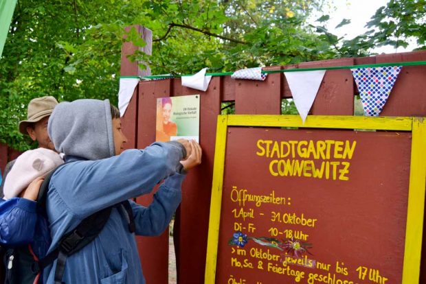 Das Gemeinschaftsgartenprojekt der Ökolöwen „Gemeinsam gärtnern – Zusammen wachsen“ im Stadtgarten Connewitz wurde am Mittwoch, 18. September, als offizielles Projekt der UN-Dekade Biologische Vielfalt im Rahmen des Sonderwettbewerbs „Soziale Natur – Natur für alle“ ausgezeichnet. Im Ökolöwen-Projekt „Gemeinsam gärtnern – Zusammen wachsen“ bringt sich eine buntgemischte, generationenübergreifende Gartengemeinschaft ehrenamtlich bei der Pflege des Stadtgarten Connewitz ein.