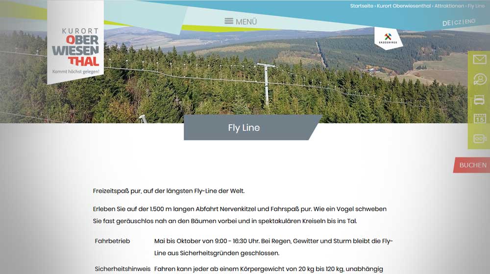 „Freizeitspaß pur, auf der längsten Fly-Line der Welt. Erleben Sie auf der 1.500 m langen Abfahrt Nervenkitzel und Fahrspaß pur. Wie ein Vogel schweben Sie fast geräuschlos nah an den Bäumen vorbei und in spektakulären Kreiseln bis ins Tal.“ Diese Zeilen sind zu lesen auf den Internetseiten des Kurortes Oberwiesenthal. Und die beiden Ski-Springer Jens Weißflog und Richard Freitag halten im Foto gleich noch die Daumen hoch dafür.