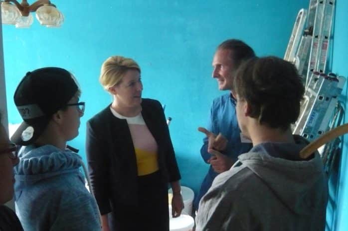 Die Haustechnik sanierte wie schon in der Nummer 96 die LWB und hielt dabei die KdU-Sätze ein. Ministerin Franziska Giffey besuchte ein Jahr darauf das Wohnprojekt, welches wie gesagt auch den Raum für die Wohnschule bietet. Und noch ein Jahr später zahlte sich die unermüdliche Überzeugungsarbeit im Stadtrat, im Jugendhilfeausschuss und bei den Fraktionen aus: Leipziger JugendWohnen erhielt eine städtische Förderung, junge Menschen lernten das Wohnen, suedpol feierte.