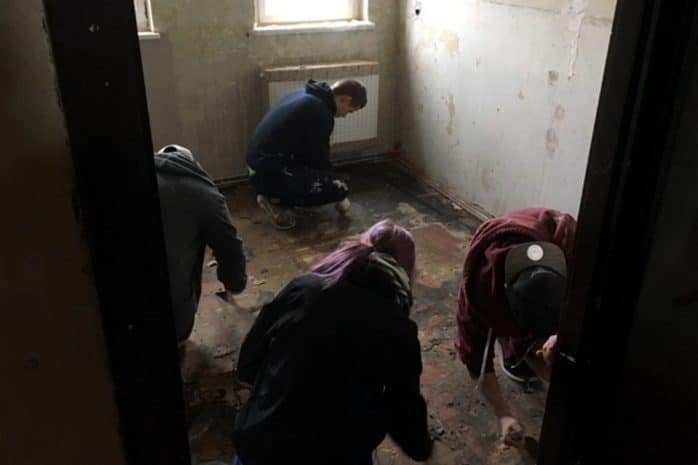 Das Nachbarhaus Bornaische 98 wurde gemeinsam mit Jugendlichen vom Netz kleiner Werkstätten wohnbar gemacht. Das letzte LWB-Haus im Stadtgebiet, das unbewohnt und mit kleinen Wohnungen für Jugendwohnen geeignet ist, so Fischer, und nicht auf den normalen Wohnungsmarkt soll. Zusammen mit der früheren Krähenhütte entstand das Projekt „Leipziger JugendWohnen“: 19 Wohnungen in dem Doppelhaus, davon drei für junge Familien sowie eine für eine WG. Projektleiter Guntram Fischer konnte sich 2017 über Fördermittel vom Bund für den Ausbau freuen.