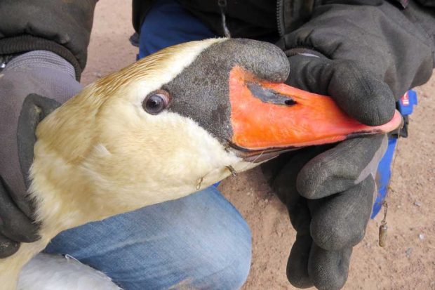 Am 3. April wurde die Wildvogelhilfe des NABU Leipzig zu einem Schwan in Delitzsch gerufen. Bei ihm steckte der Angelhaken tief im Schnabelrand und die Schnur war um die Zunge gewickelt. Der Rest der Schnur hing aus dem Schnabel, es bestand die Gefahr, dass sich das Tier beim Gründeln unter Wasser verfängt. Die Wildvogelhilfe Leipzig konnte den Haken erfolgreich entfernen.