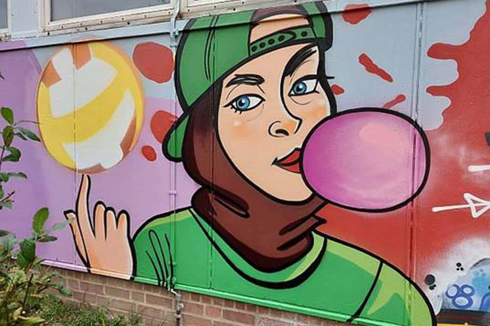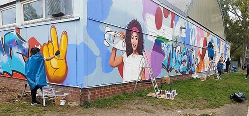 Mithilfe des Schülerrates der 20. Oberschule wurden geeignete Motive für die beiden Außenfassaden gesammelt und gefunden, vom Graffitiverein vorgemalt und von den Schüler/-innen teilweise vollendet. Zuvor wurden mithilfe der Stadt und der Eltern und Schülern Anfang Oktober die Grundlage geschaffen. Die Stadt beseitigte den Wildwuchs um die Turnhalle, die Eltern und Schüler grundierten die Malfläche.