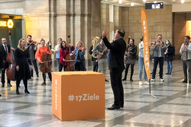 Mit der Aktion, an der bundesweit 850 Musikerinnen und Musiker beteiligt waren, sollten die 17 Ziele für nachhaltige Entwicklung der Agenda 2030 der Vereinten Nationen einer breiten Öffentlichkeit nähergebracht werden. Gespielt wurde der vierte Satz der 9. Sinfonie von Ludwig van Beethoven.