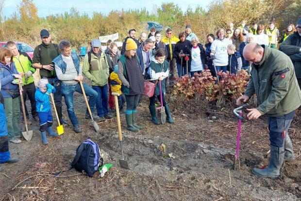 Auch Mitarbeitende der BBW-Leipzig-Gruppe und Jugendliche vom Berufsbildungswerk Leipzig der Unternehmensgruppe beteiligten sich an der Pflanzung am Sonntag.