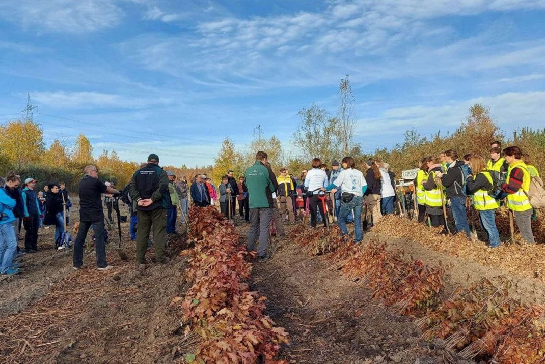 Auch diese Bäume wurden gemeinsam mit 3.900 weiteren Setzlingen (insgesamt 5.000) bei einer Pflanzaktion am 31. Oktober in die Erde gebracht. Ort der Pflanzaktion ist das ehemalige Tagebaugebiet Peres im Süden von Leipzig.