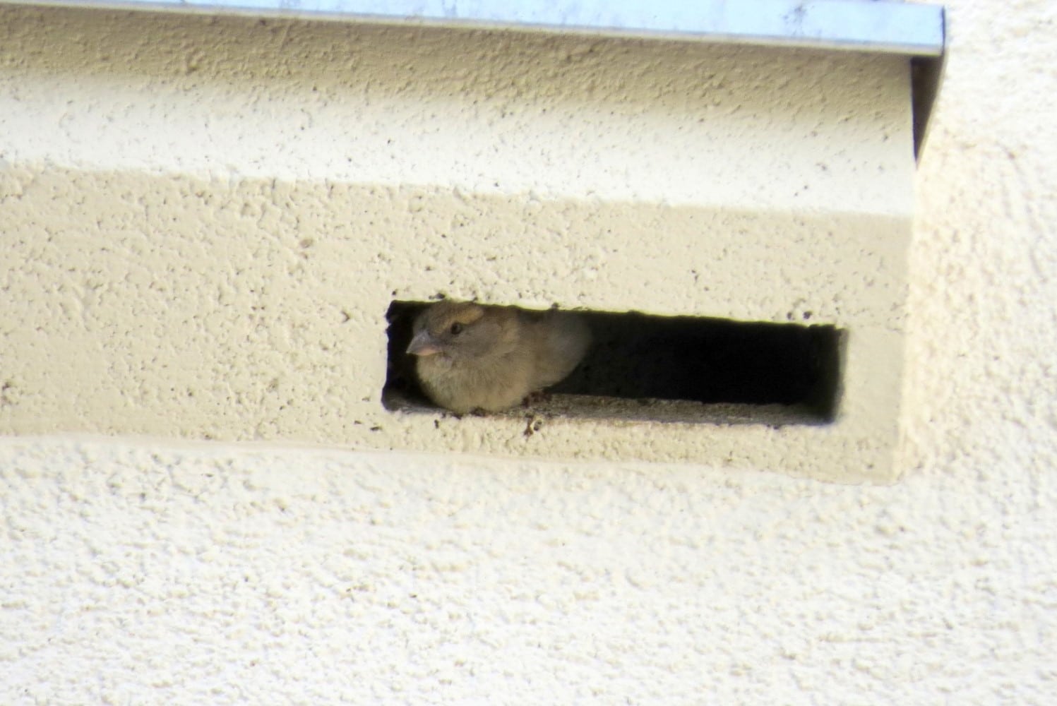 beobachten, ob Vögel in Nischen an der Fassade, unter Fensterbrettern, hinter