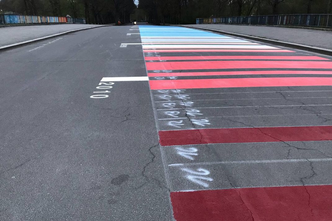 Entwickelt wurden diese Streifen, zu Deutsch auch Klimastreifen genannt, 2018 von dem britischen Klimatologen Ed Hawkins. Initiiert und organisiert durch das Klimabündnis „Leipzig fürs Klima“ wurden die Warming Stripes in der vergangenen Woche auf der viel frequentierten, nur für Fußgänger und Radfahrer freigegebenen Sachsenbrücke im Clara Zetkin Park dauerhaft aufgetragen.