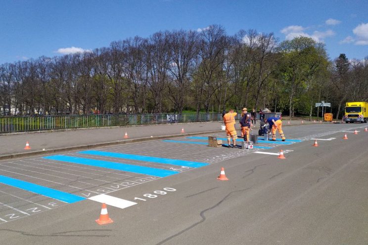 Auf der Sachsenbrücke sehen dann auch jeden Tag tausende Passanten die Streifen auf dem Brückenpflaster.