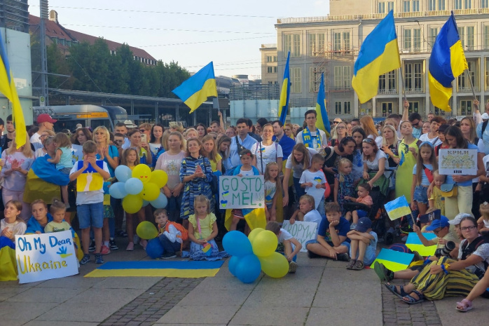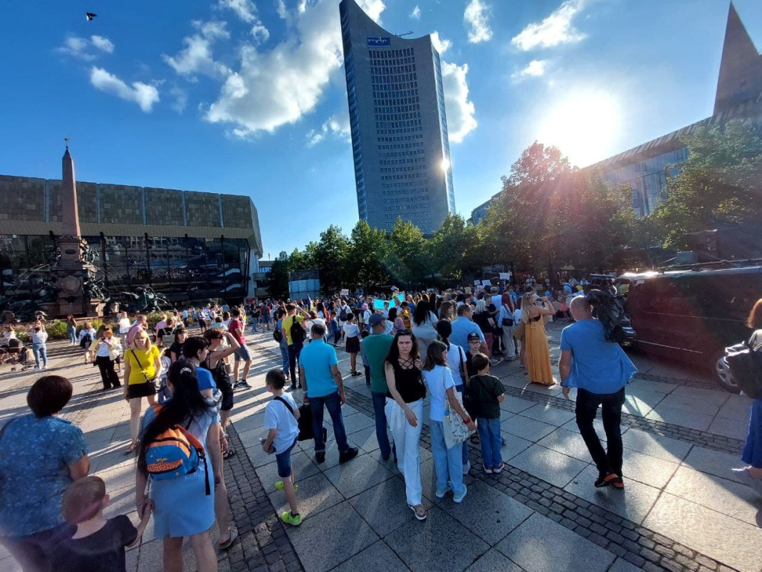 Eingeladen zur Demonstration am 24. August hatte der „Leipziger Freundeskreis der Ukraine“. Seit Kriegsbeginn haben über 10.000 Schutzsuchende aus der dem Land in Leipzig Zuflucht gefunden – vor allem Frauen und Kinder. Denn die Brüder, Ehemänner und Väter sind in der Regel in der Ukraine geblieben und dienen zumeist in der ukrainischen Armee, die sich am 24. August schon ein halbes Jahr erfolgreich gegen die russischen Truppen zur Wehr setzte.