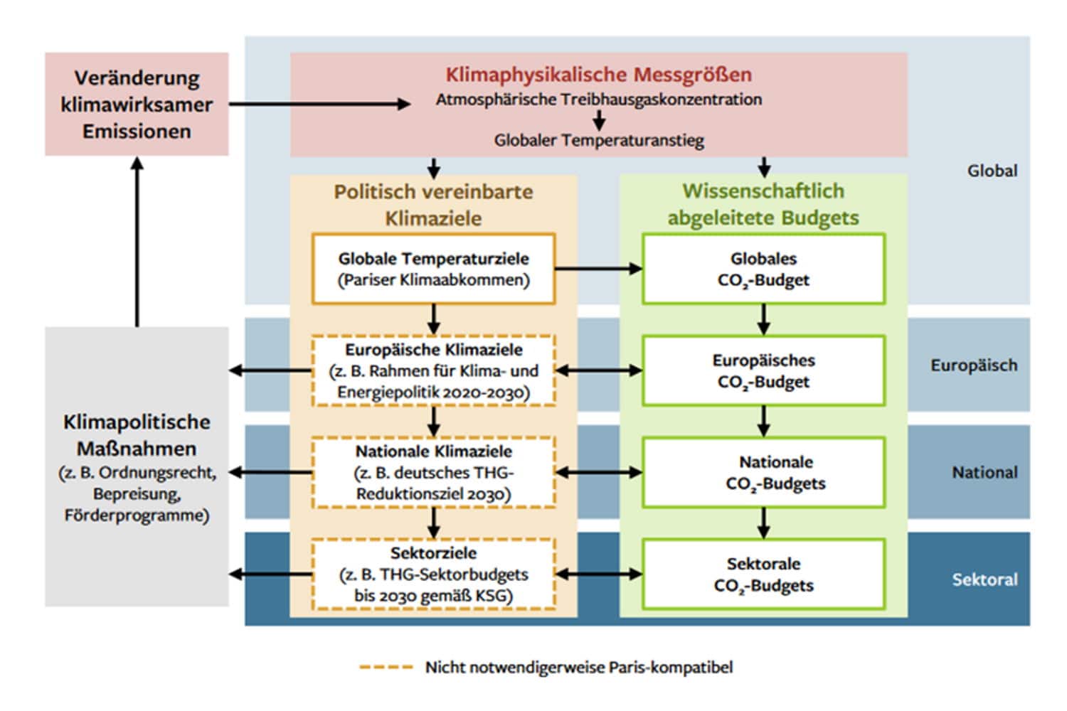 Abbildung 1: Das CO2-Budget als Grundlage bestehender Klimaziele auf verschiedenen Ebenen (Quelle: Abb 2-3 aus [2])