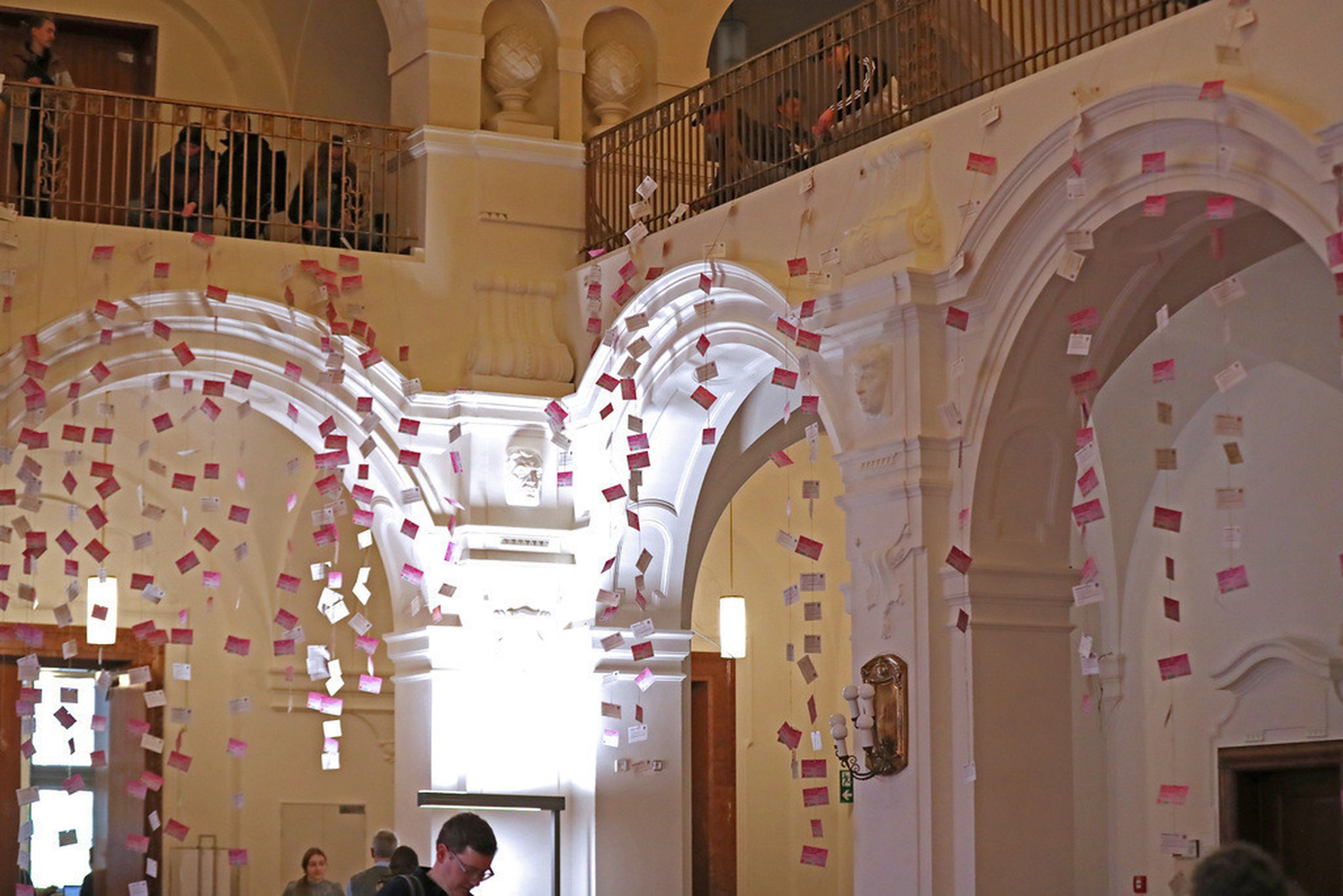 Die Postkartenaktion in der Wandelhalle des Neuen Rathauses. Foto: Jan Kaefer