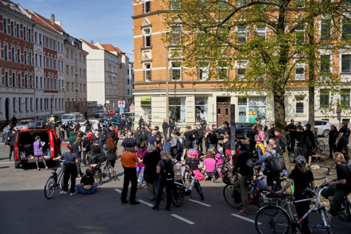 Am Samstag ab 14 Uhr sammelten sich daher Teilnehmerinnen und Teilnehmer der Versammlung im Wilhelm-Külz-Park, bereits kurz nach 13 Uhr war ein Fahrrad-Zubringer vom Connewitzer Kreuz aus in Richtung Südosten der Stadt aufgebrochen.