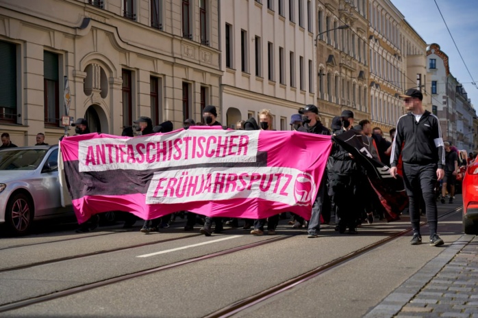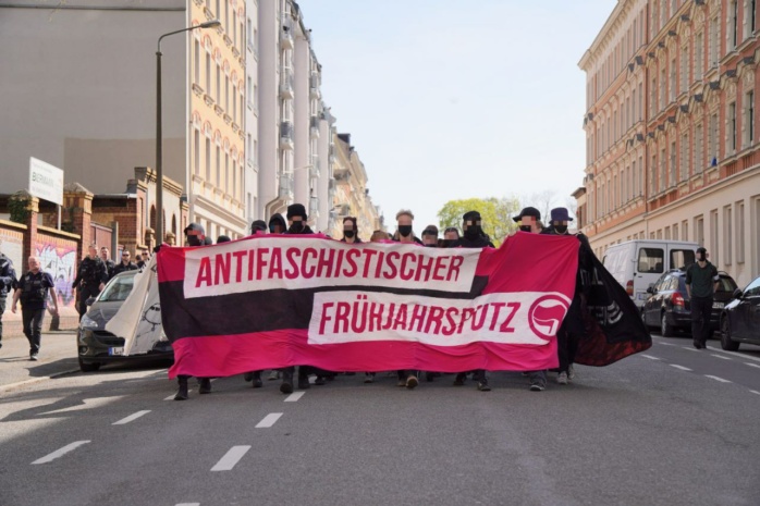 „‚Mahnwachen‘ gegen die neue Unterkunft für Geflüchtete in Stötteritz, Hass und Hetze gegen People of Colour, Hakenkreuze sowie andere nationalsozialistische Symbole im Viertel, Angriffe auf Linke und Einschüchterungsversuche gegenüber politischen Akteur*innen – die Faschos fühlen sich immer noch wohl in Stötteritz und wähnen sich unbeobachtet“, hieß es im Demoaufruf für den Samstag.
