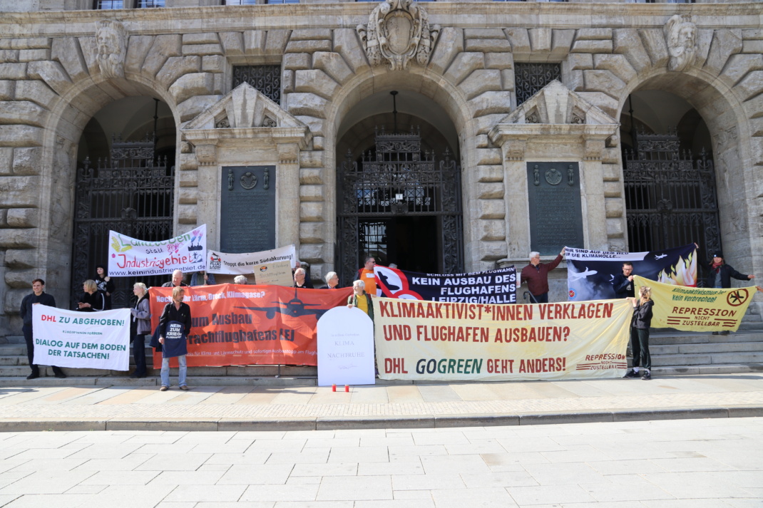 Das war es dann wohl: Mit einer Protestkundgebung vorm Neuen Rathaus kündigten am Mittwoch, dem 24. Mai, die Vertreter der Bürgerinitiativen, die sich seit Jahren um die Begrenzung des Fluglärms am Flughafen Leipzig/Halle bemühen, ihre Mitarbeit am Dialogforum Flughafen auf, „weil es nicht mehr tragbar ist, wie Flughafen und DHL mit Klimaschutz und demokratischen Beschlüssen umgehen.“ Der Umgang mit dem Ortschaftsrat Burghausen und dem Aktionsbündnis gegen den Flughafenausbau gab dann endgültig den Ausschlag.