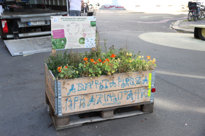 Die Besucher/-innen wurden auch gleich noch dazu aufgefordert, Essen und Trinken aus Mehrweg-Behältnissen zu konsumieren. Denn natürlich geht es auch um ein müllvermeidendes, naturverträgliches Leben auf den Straßen.