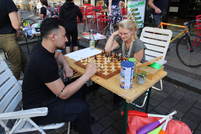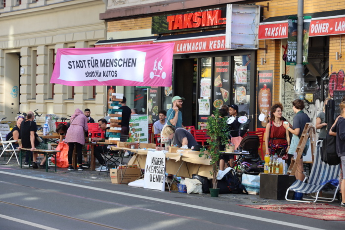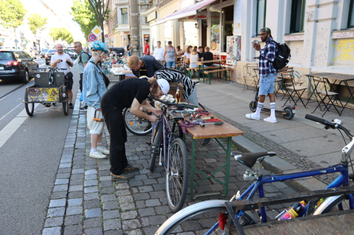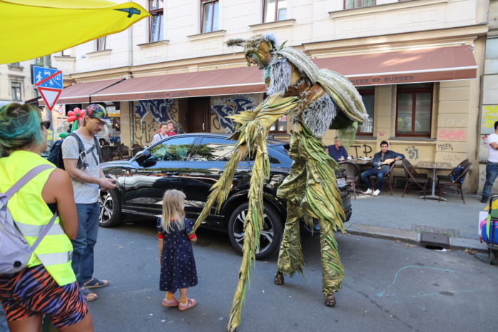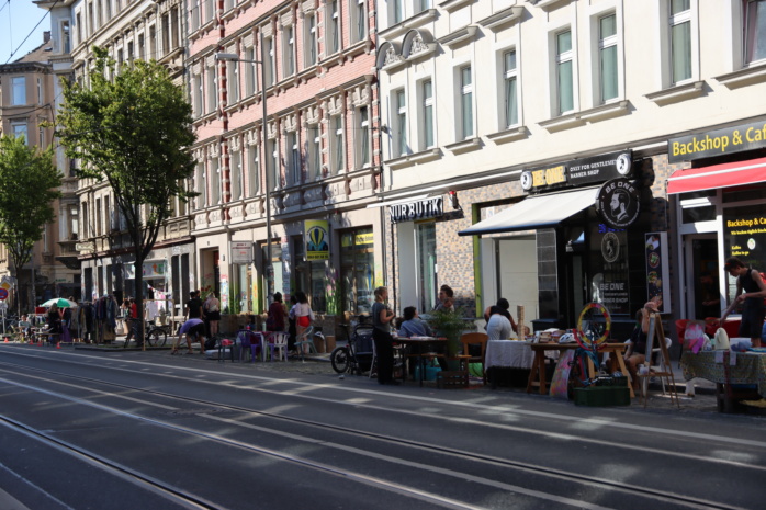 Kurz nach 17 Uhr wurde die Fahrbahn vollständig für den Verkehr gesperrt. Es gab Wanderbäume zum Mitbauen, eine Modenschau „2nd Glam“, ein Fahrradkino, ein Riesenjenga, Tischtennis und weitere Spiele. Außerdem warteten eine Outdoor-Siebdruckwerkstatt, ein Workshop zum Bemalen/ Besticken von Textilien, Hemden und Stoffen auf rege Beteiligung.