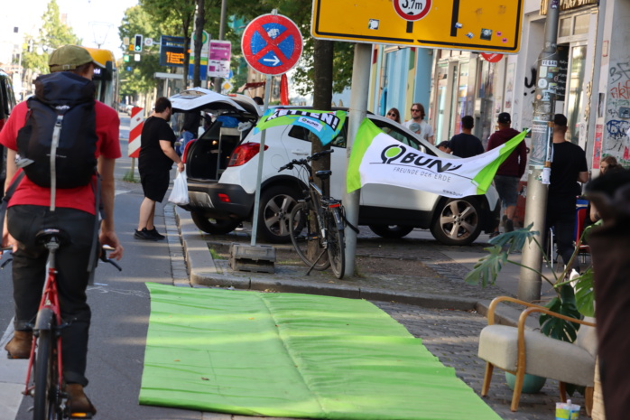 „Am PARK(ing) Day sieht das Straßenbild anders aus“, erklärte Ökolöwensprecher Matthias Uhlig. „Aus Parkplätzen werden kleine grüne PARKs, die wir in Leipzig so dringend brauchen – auch über den PARK(ing) Day hinaus!“