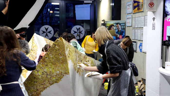 „Ich bin heute hier, um diese wichtige Aktion zu unterstützen, damit sie möglichst viel Aufmerksamkeit für den Krieg und die Flucht erregt“, erklärt Anna aus Kiew, die vor zwei Jahren mit ihren zwei Kindern nach Deutschland geflohen ist. „Mir ist es wichtig, dass der Krieg immer wieder thematisiert wird, damit das Leid der Menschen nie in Vergessenheit gerät.“