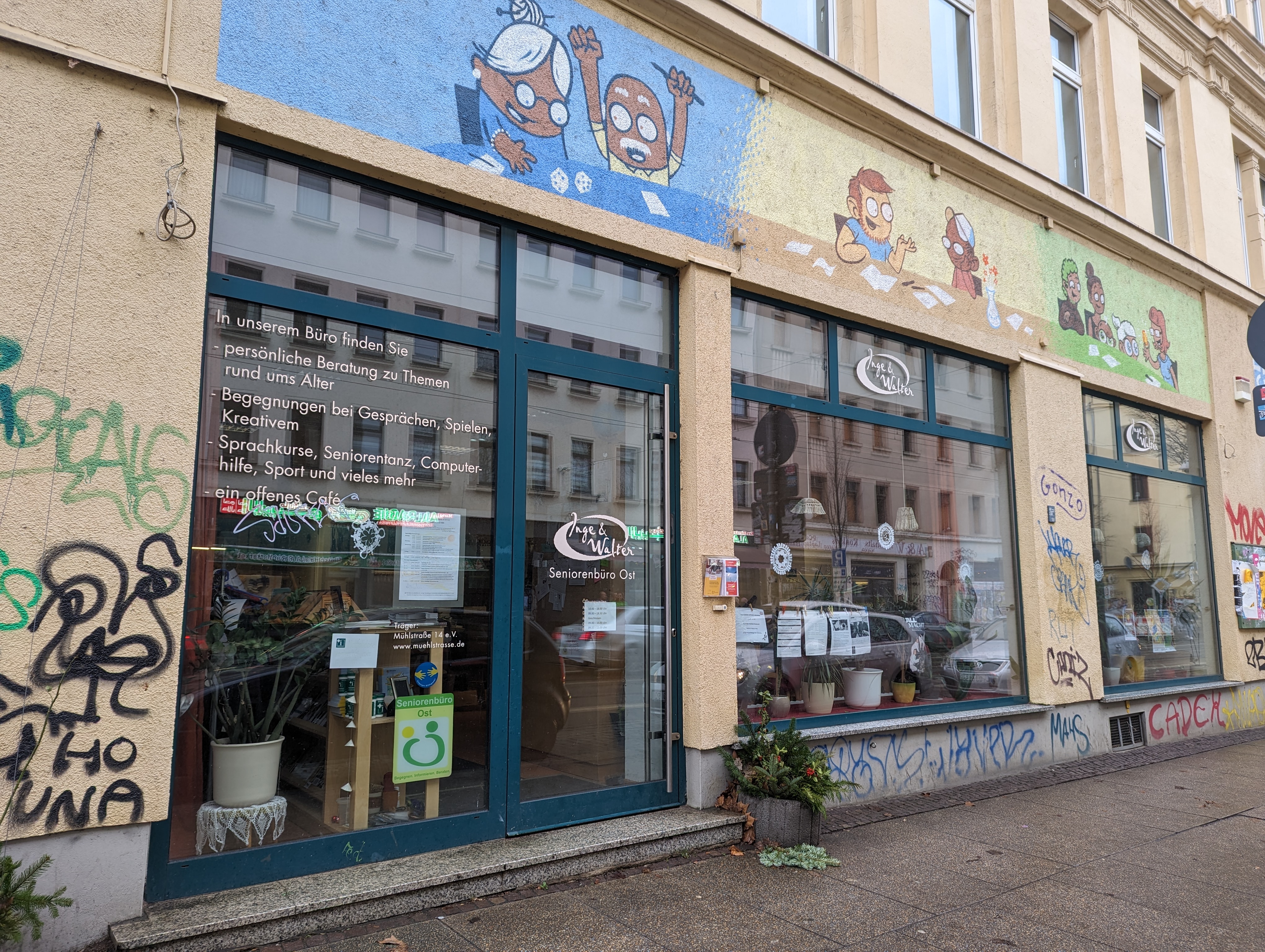 Im Internationalen Sprachcafé können Menschen unterschiedlicher Kulturen in angenehmer Atmosphäre die deutsche Sprache üben. Einmal monatlich (außer in den Sommermonaten Juli und August) findet zudem ein Sonntagscafé statt. Außerdem können sich Seniorinnen und Senioren sowie deren Angehörige in vielfältigen Lebensfragen individuell beraten lassen. Aber man kann auch nur hereinschauen auf eine Tasse Kaffee und ein Gespräch, im Bücherregal oder am Kleiderständer stöbern. Außerdem bietet ein Ehrenamtlicher handwerkliche Unterstützung im Haushalt an. Bei allen diesen Anliegen ist es uns wichtig, mit den Netzwerkpartnern, vor allem des Leipziger Ostens, engen Kontakt zu halten.