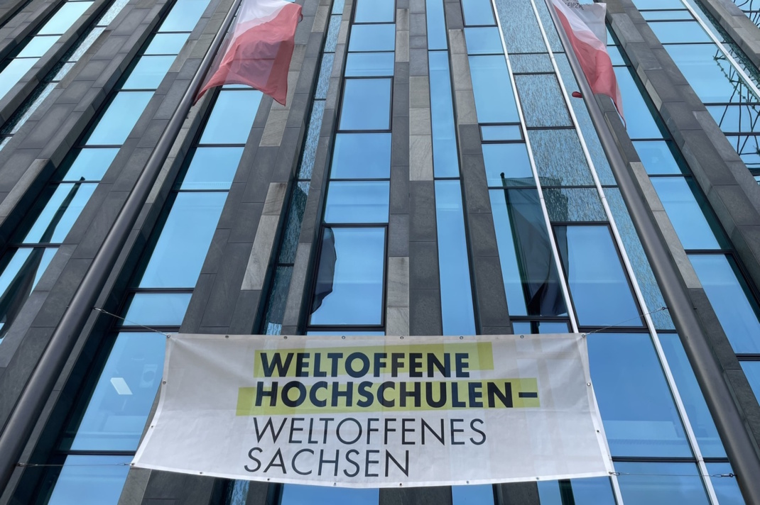 „Die Universität Leipzig bezieht entschieden Position gegen Angriffe auf unsere Demokratie. Die Achtung der Würde aller Menschen, die freiheitlich-demokratische Grundordnung, Pluralität, Toleranz, internationaler Austausch und Vielfalt sind Voraussetzungen für unser Zusammenleben auf dem Campus, für erfolgreiche Forschung und beste Studienbedingungen.