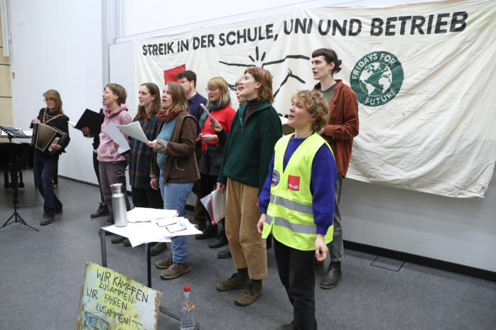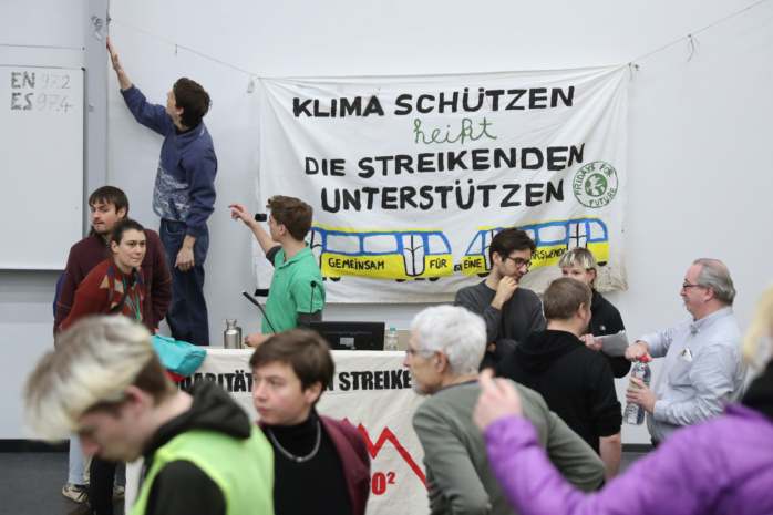 Am 2. Februar hatten die LVB-Beschäftigten bereits in einem Warnstreik bewiesen, dass ohne sie Busse und Bahnen stillstehen. Unterstützt wurden die Beschäftigten der LVB und die Klimaaktivist/-innen auf der Stadtversammlung auch von Beschäftigten in der Pflege, aus Kindertageseinrichtungen und von Fahrgästen.