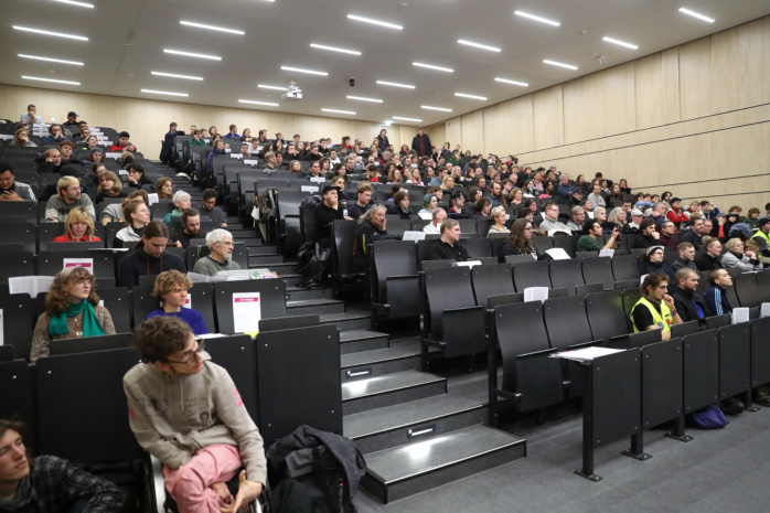 Die Kampagne #WirFahrenZusammen von ver.di und Fridays for Future (FFF) fordert bundesweit bessere Arbeitsbedingungen für die Beschäftigten im ÖPNV und mindestens 16 Milliarden Euro mehr bundesweit an Investitionen in Bus und Bahn. Rund 250 Menschen waren bei der Stadtversammlung anwesend. Eingeladen waren Lokal- und Landes- und Bundespolitiker/-innen, unter anderem auch Oberbürgermeister Burkhard Jung, der jedoch nicht erschien.