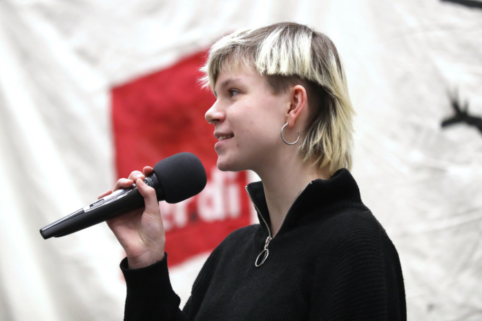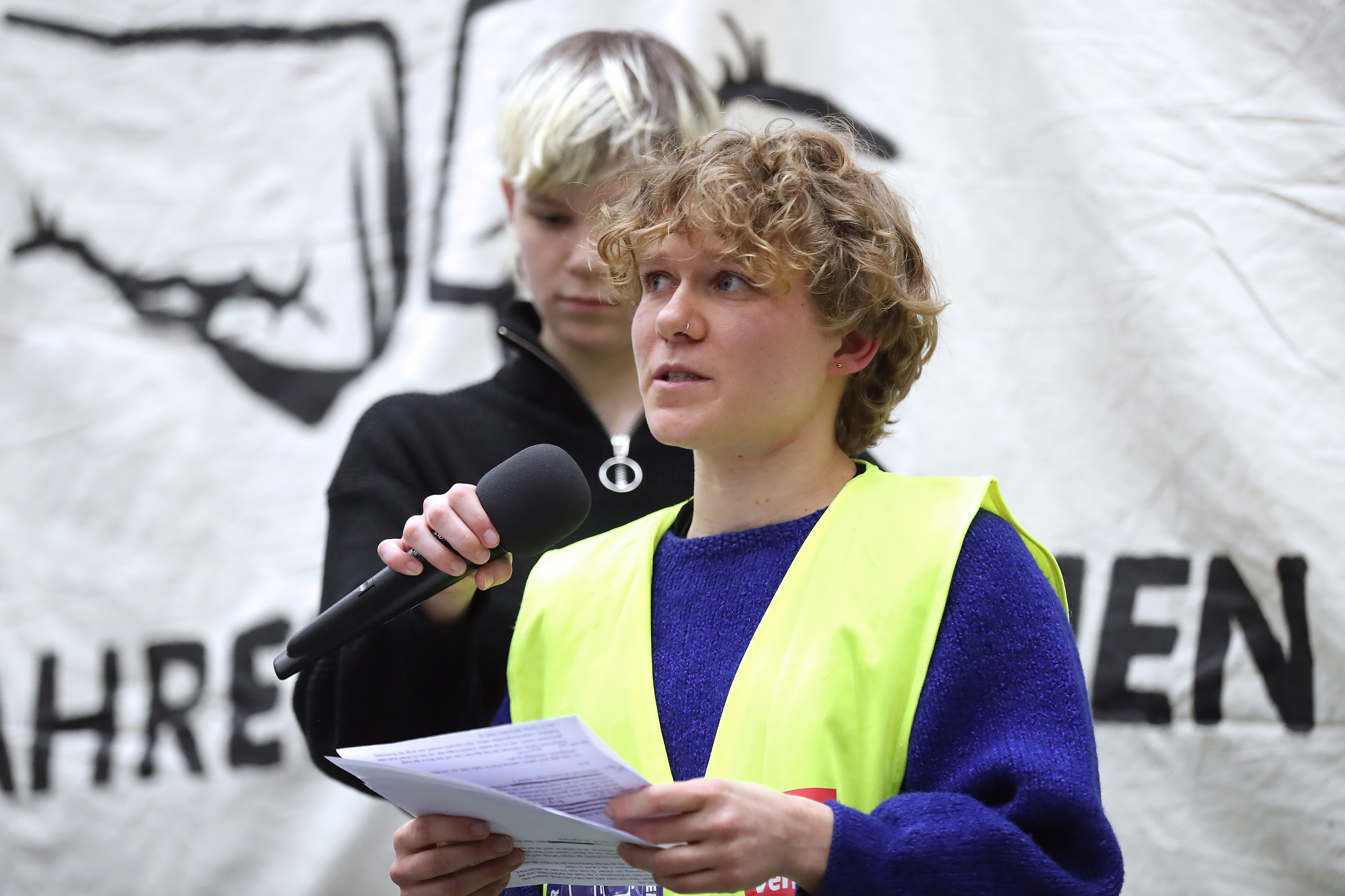 Clara, Pflegefachkraft am Uniklinikum Leipzig, ging auf die Rolle des ÖPNV beim täglichen Weg zur Arbeit ein: „Wir als Arbeiter/-innen im Schichtdienst, sind nicht nur auf einen guten Nahverkehr angewiesen, mit dem wir zu frühesten und spätesten Zeiten zur Arbeit und nach Hause kommen. Wir als Arbeiter/-innen wollen faire Arbeitsbedingungen und Löhne für alle!“