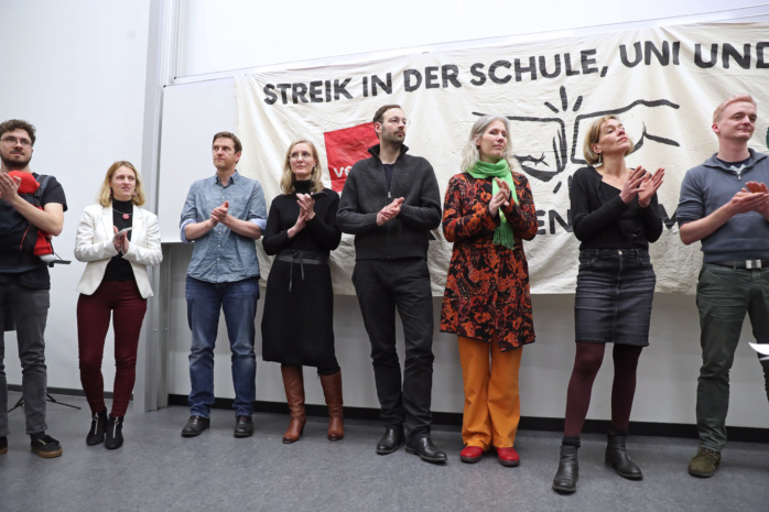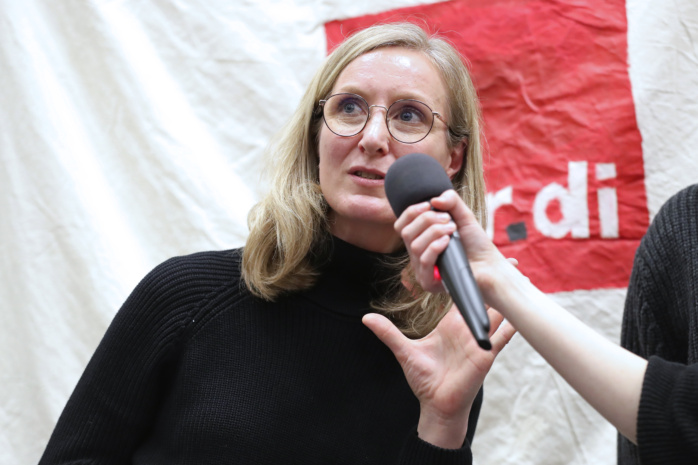„Am Ende liegt es an uns, an jedem einzelnen, ob wir das durchsetzen, was wir für ein gutes Leben brauchen und was uns zusteht. Einen Abend wie diesen könnte man genauso für die Kolleginnen und Kollegen in den Pflegeberufen oder den Schulen und Krippen machen, denn dort gilt das Gleiche. Wir sehen, was möglich ist, wenn wir uns organisieren und zusammen Druck hinter unsere Forderungen bringen.