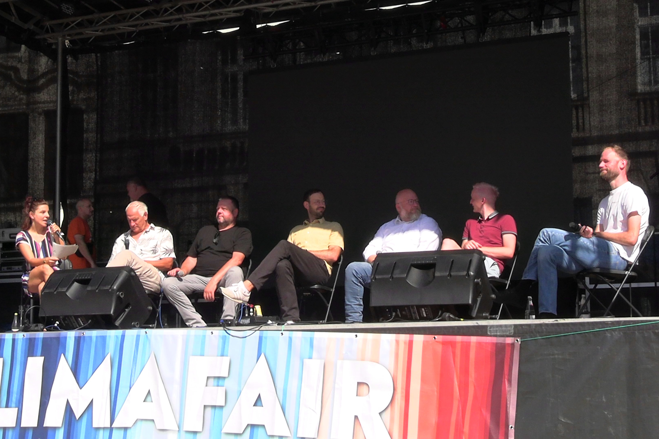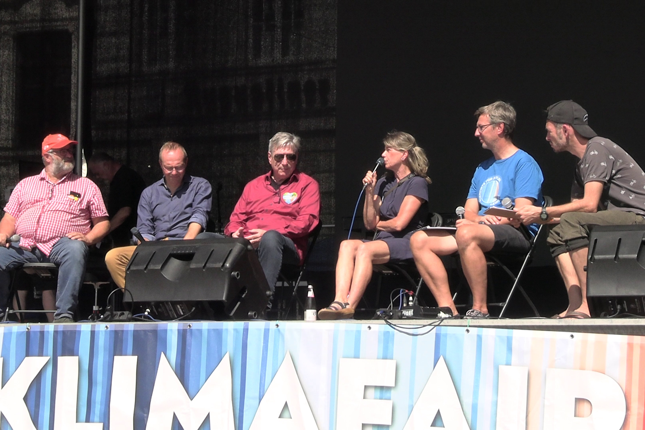 Verschwitzt verließen die Podiumsteilnehmer die Bühne, die wohl etwa auf 50 Grad aufgeheizt war. Trotzdem gab uns Minister Günther noch ein kurzes Interview. Zu diesem Zeitpunkt musste ich die KlimaFAIR leider verlassen, die Gesundheit spielte bei der Hitze einfach nicht mehr mit.