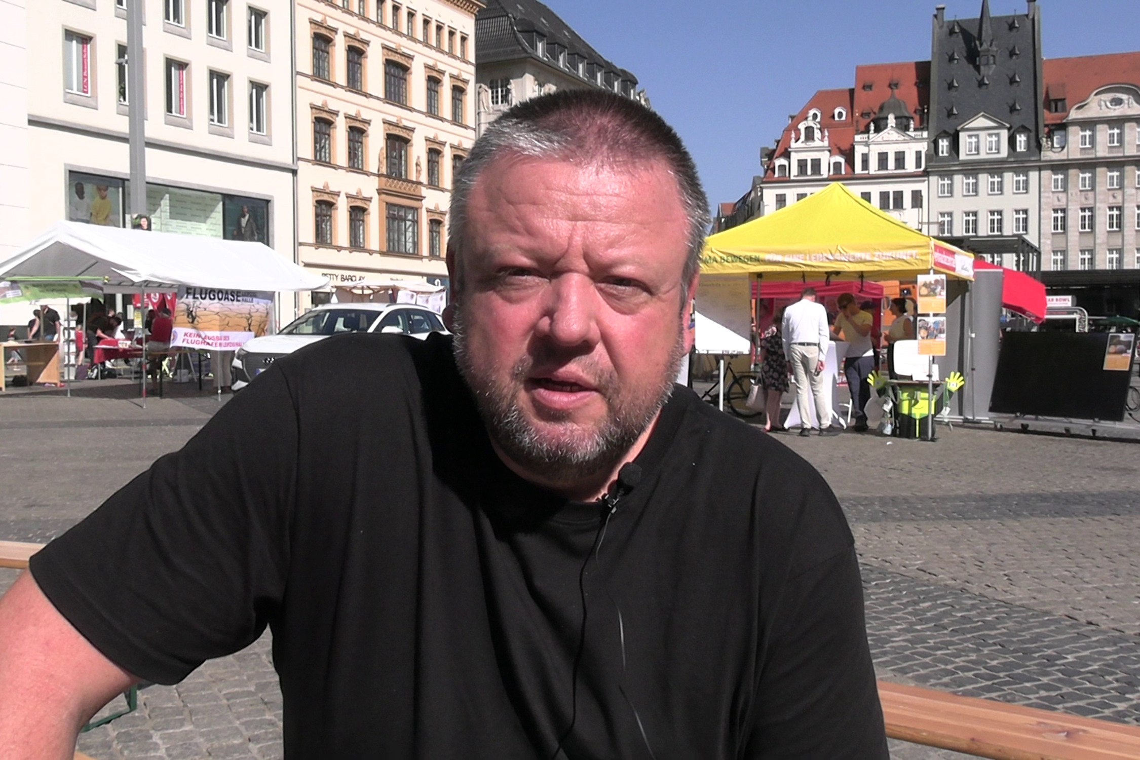 Nach der Eröffnung durch die Organisatoren kam die obligatorische Rede des Leipziger Umweltbürgermeisters, Heiko Rosenthal (Linke). Wir fragten ihn im Anschluss.