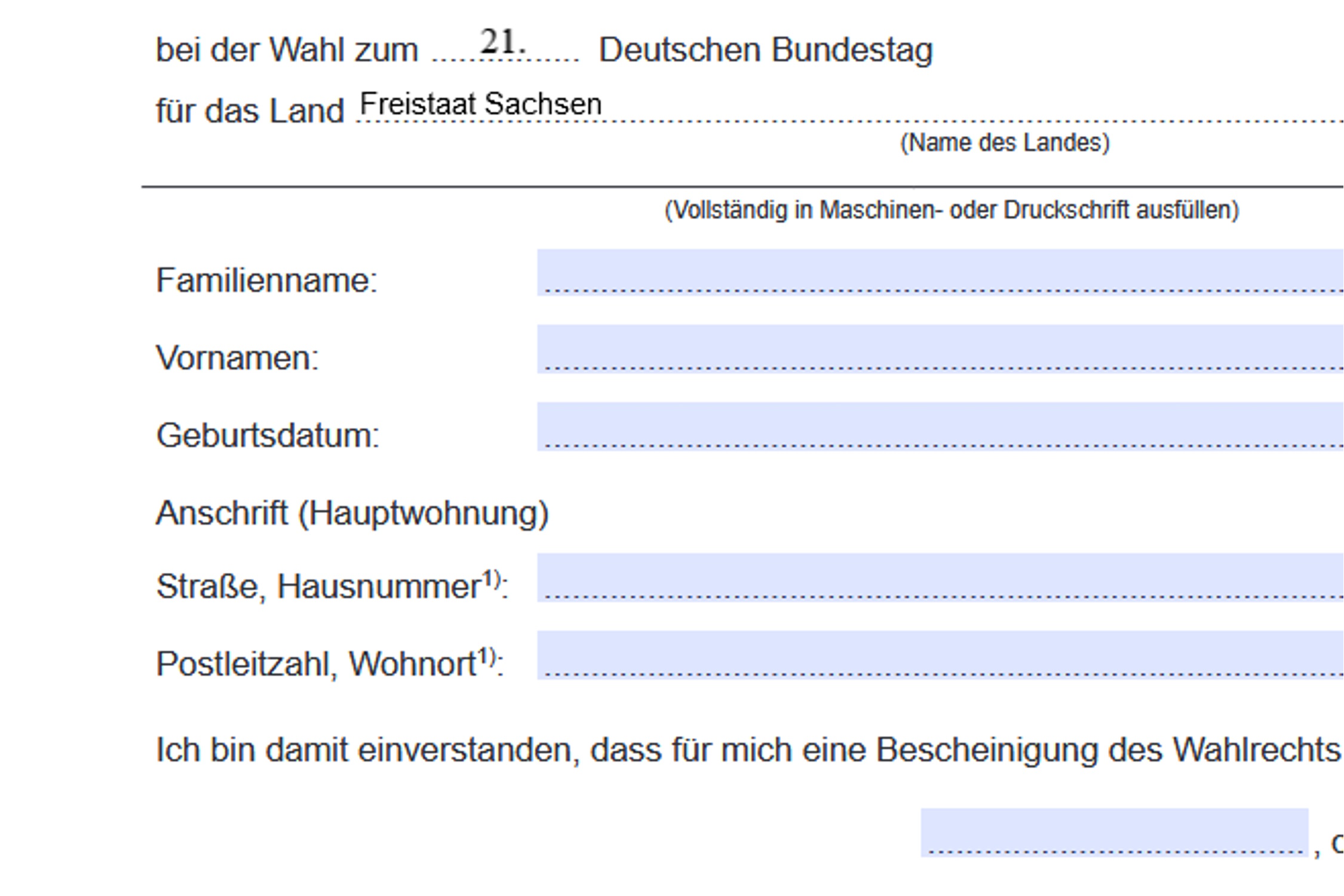 In Sachsen muss jede dieser Kleinparteien 2.000 bestätigte Unterstützungsunterschriften einreichen, um auf dem Wahlzettel für die Bundestagswahl zu stehen. Bei der Bundestagswahl 2021 waren das 19 Kleinparteien, das bedeute: Insgesamt 38.000 bestätigte Unterstützungsunterschriften wurden benötigt. Geht man von etwa 20 % fehlerhaften Formularen aus, weil beispielsweise die Unterschrift für den Zweitwohnsitz geleistet wurde, dann müssen etwa 45.000 Unterschriften in Sachsen gesammelt und geprüft werden.