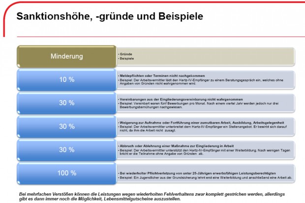 Die 3,4 bzw. 3,5 Prozent sind natürlich reine Augenwischerei. Denn schon der Blick in die Grafiken der Arbeitsagentur zeigt, dass das kein wirklich realistisches Bild ergibt. Denn dort steht eindeutig: „Insgesamt haben 27.871 Menschen Leistungskürzungen erhalten.“