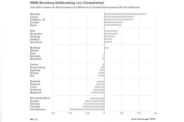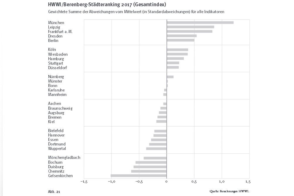 Für FreikäuferDa war der Jubel wieder groß. Ach, wie toll Leipzig doch ist. Wieder ist es in einem bundesweiten Ranking ganz vorn gelandet. Diesmal in einem, das die Berenberg Bank beim Hamburgischen WeltWirtschaftsInstitut bestellt hat. Platz 2 hinter München, vor Frankfurt, weit vor Dresden und Berlin. Selbst „Focus“ glaubte am 15. September, Lob verteilen zu müssen.