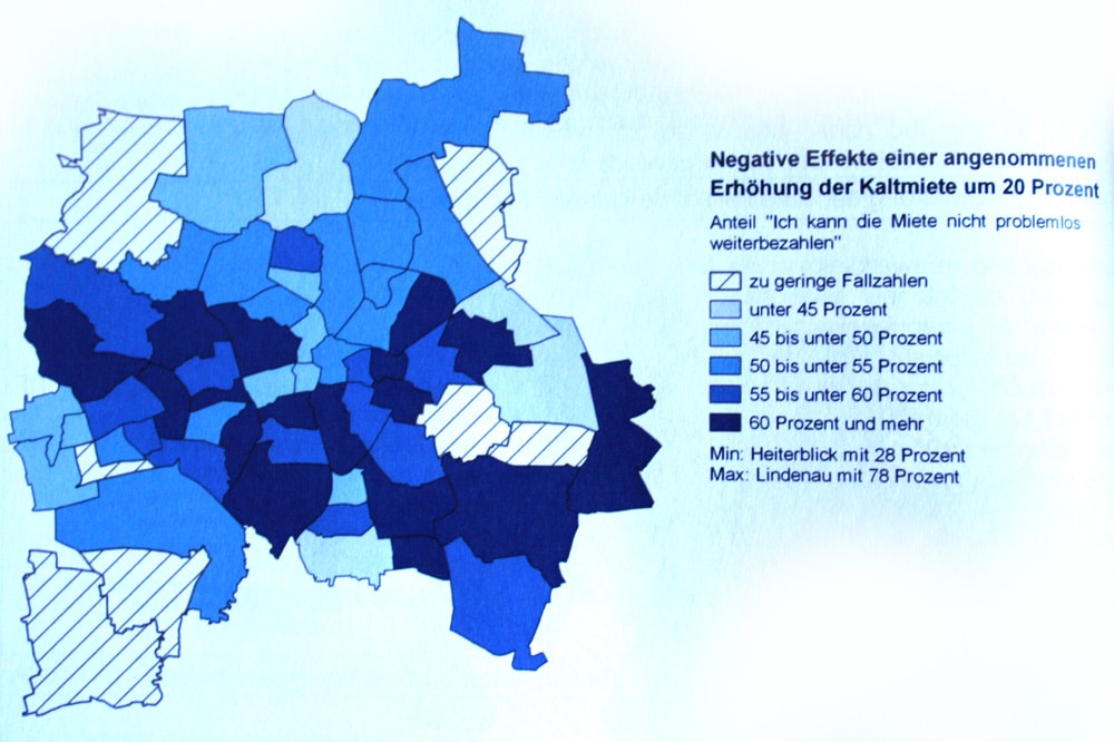 Und die Bürgerumfrage fragte die Leipziger auch, ob sie einen 20-prozentigen Anstieg ihrer Mietkosten verkraften würden. Das war dann sozusagen die Frage zum Eingemachten: Nur 43 Prozent gaben an, dass sie das verkraften würden. 57 Prozent wären davon überfordert. Das heißt: Eigentlich steckt im Leipziger Wohnungsmarkt nicht wirklich Potenzial zur Mieterhöhung.